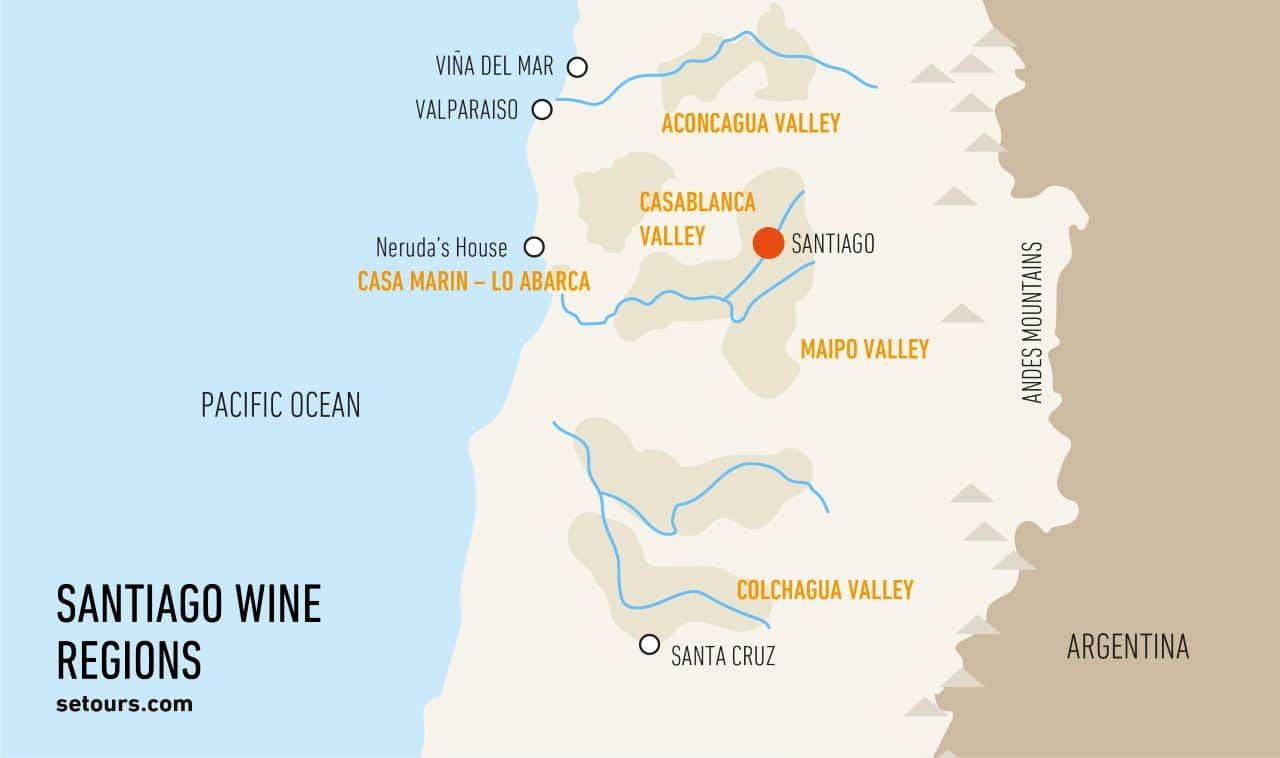 Santiago is the best destination in Chile (and South America), for wine lovers. This is due to the fact that there are various wine valleys around the city.